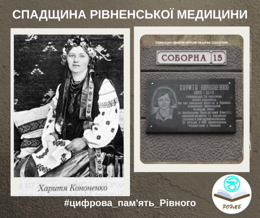 125 років від Дня народження Харитя Мусіївна Кононенко (* 18 жовтня 1900, Миколаївка Кременчуцького повіту — нині Полтавської області — † 15 жовтня 1943, Рівне) — українська громадська діячка, журналістка. Дочка поета Мусія Кононенка.