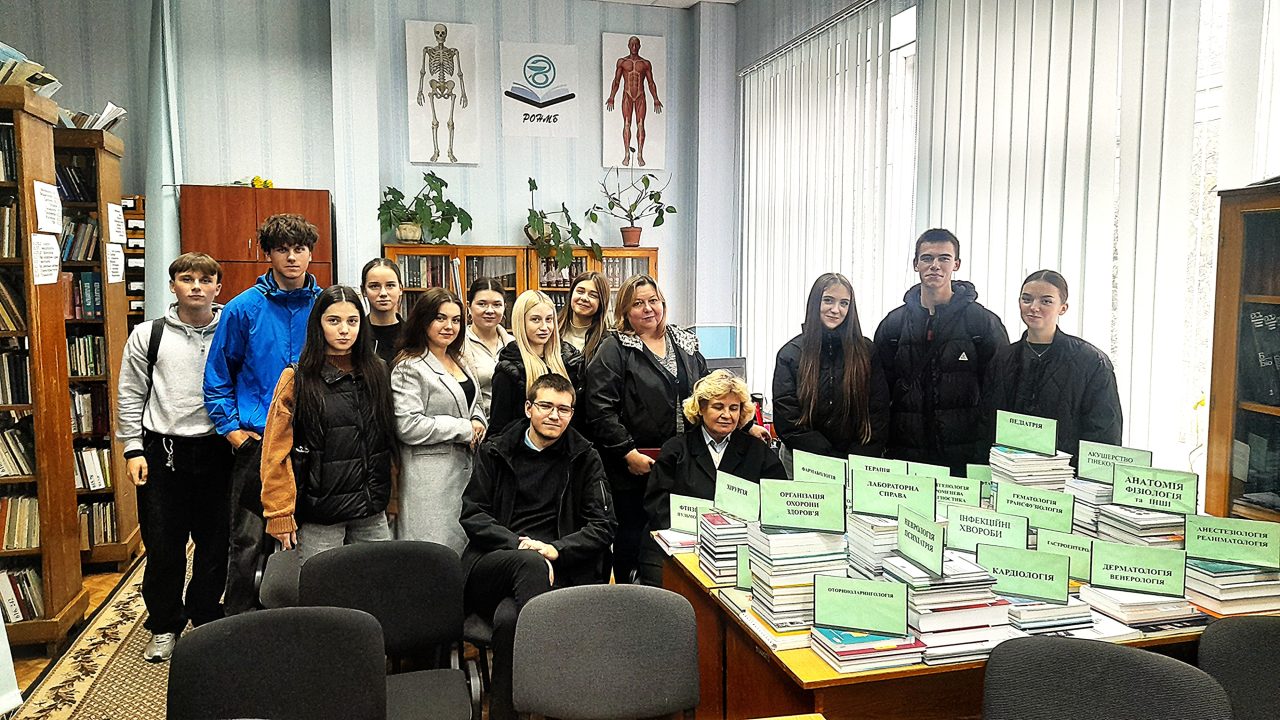 Завершилася зустріч теплим фото на згадку біля медичних книжок — символу знань, які допомагають майбутнім медикам ставати справжніми професіоналами.